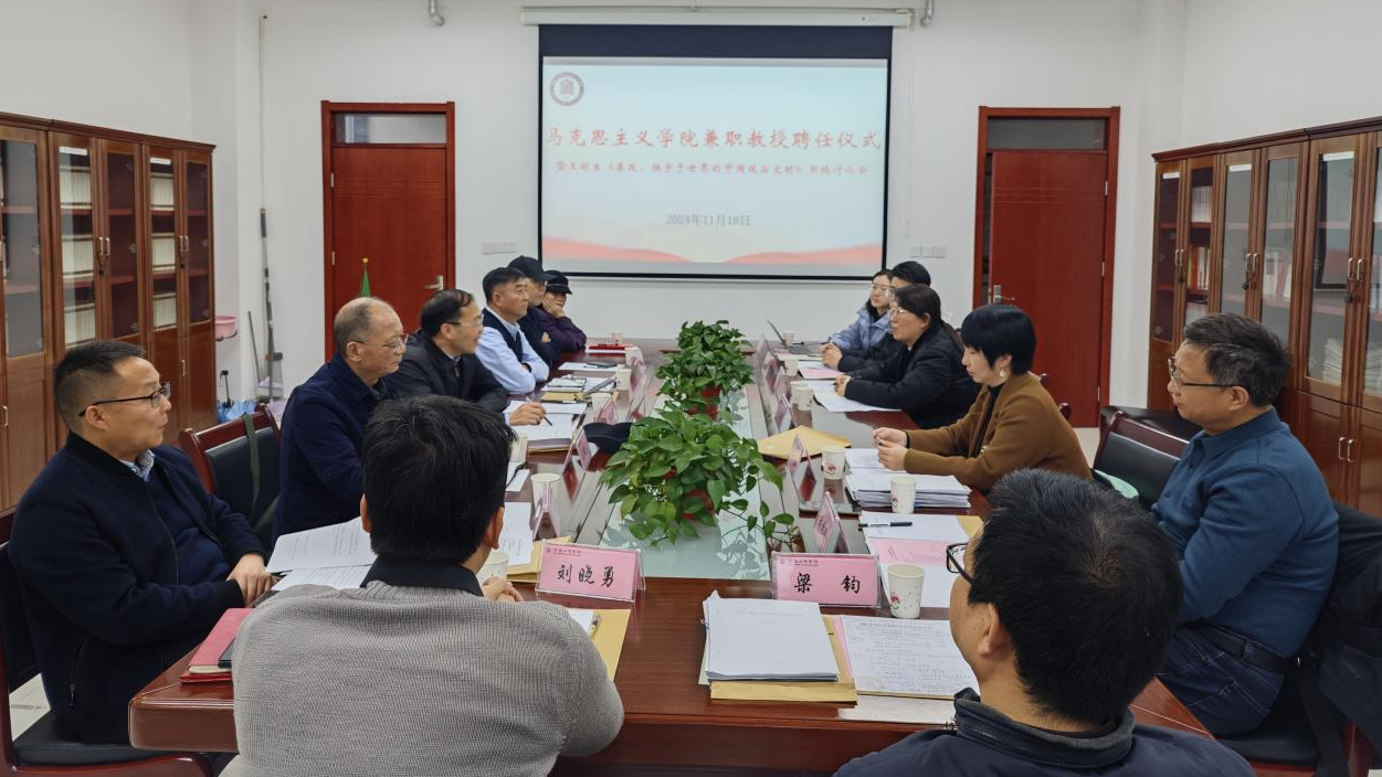 11月18日下午,马克思主义学院在高新校区博文楼1201会议室举行王明生《秦政:独步于世界的中国政治文明》书稿讨论会暨兼职教授聘任仪式,会议由马克思主义学院副院长张丽主持。