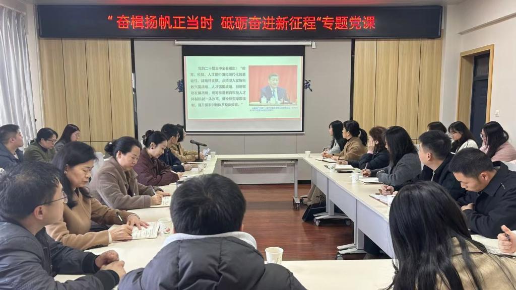 沙红梅从党的二十届三中全会精神、全国教育大会精神、践行教育家精神和加强师德师风建设等四个方面讲授了一堂既深刻又生动的专题党课,她要求全体师生要勇于肩负起新时代赋予教育的崇高使命,持续推动教育教学质量迈向新高度,并提出了四点希望:一是坚定信念,胸怀理想,始终保持对党和人民的忠诚与热爱;二是继承传统,勇于担当,积极传承和弘扬党的优良传统和作风;三是脚踏实地,勤勉创新,以实际行动践行党的教育方针和政策;四是凝聚力量,共铸辉煌,团结带领广大师生共同推动学院各项事业的发展。