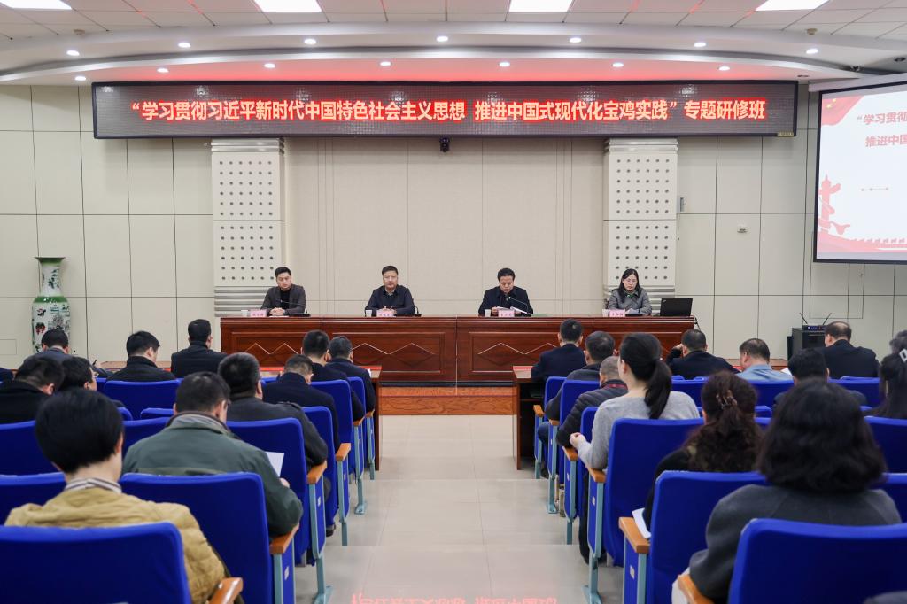 12月2日至6日,由宝鸡市委组织部主办,宝鸡市干部教育培训高校基地承办的“学习贯彻习近平新时代中国特色社会主义思想 推进中国式现代化宝鸡实践”专题研修班在开元高新校区举行。副校长冯飞龙,市委组织部副部长王小龙,马克思主义学院党总支书记张选朝出席开班式。开班式由宝鸡市干部教育培训高校基地主任王红梅主持。