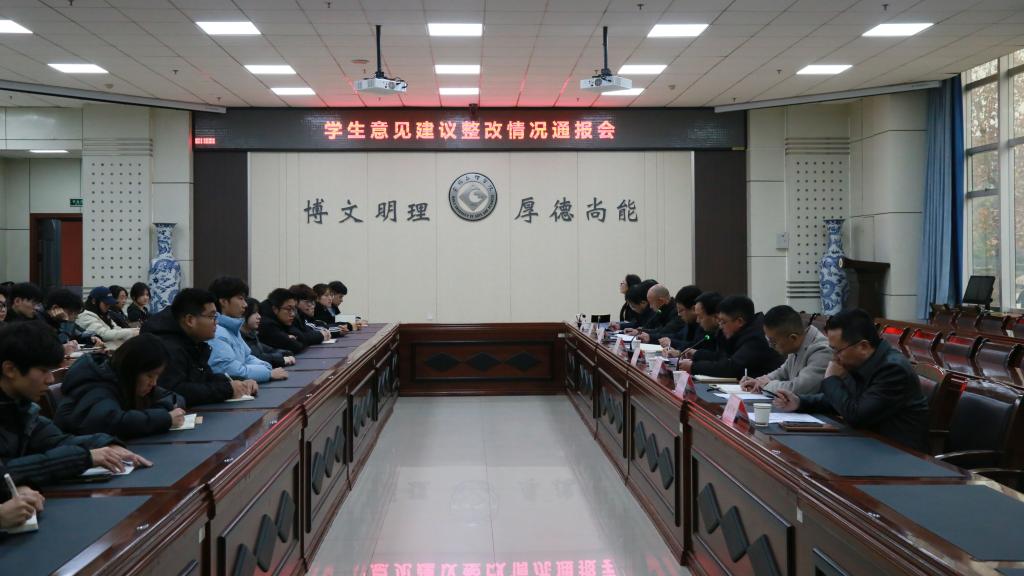 12月9日下午,学校在高新校区甘棠厅召开学生意见建议整改情况通报会。会议由学工部部长冯森主持。