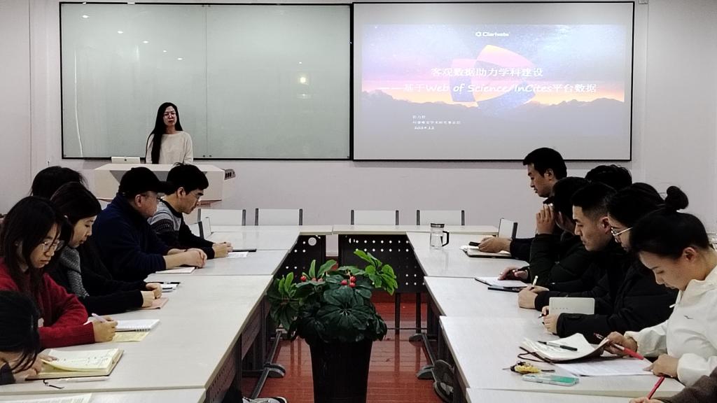 12月13日下午,科睿唯安学术研究事业部经理彭力舒应邀在高新校区明理楼六楼化学化工学院会议室为开元师生作了题为《客观数据助力学科建设——基于Web of Science/InCites平台数据》的报告。报告会由化学化工学院院长胡登卫主持。