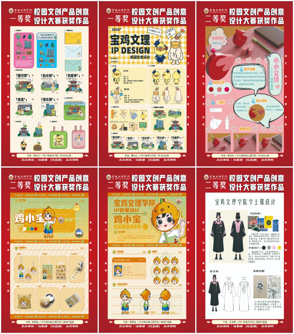 大赛作品内容丰富、形式多样、立意新,创意紧扣校园文化元素、宝鸡地域文化元素,有思想、有情感。作品较好地展示了学校历史文化、校园文化底蕴和育人成效,丰富了校园文化生活。获奖作品自即日起在高新校区博文楼一楼大厅、校史馆展出,并同步在档案馆、美术学院网站、公众号进行线上展示。