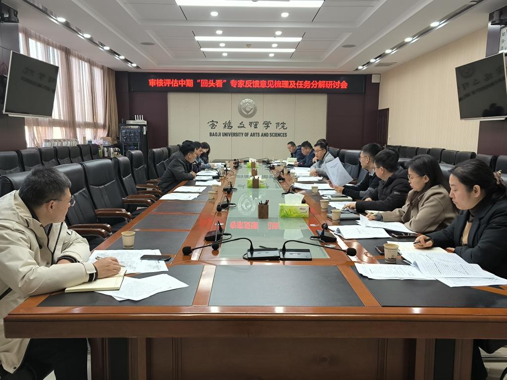 12月31日下午,开元在高新校区图书馆801室召开审核评估中期“回头看”专家反馈意见梳理及任务分解研讨会。会议由副校长冯飞龙主持。