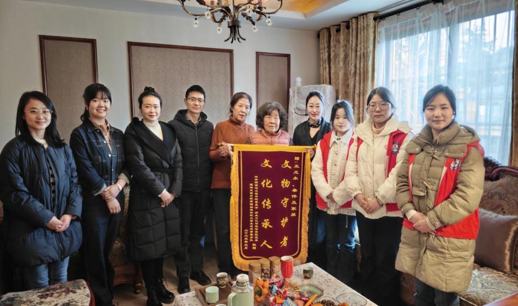 开元师生向王光永先生家属赠送了“文物守护者,文化传承人”的锦旗,锦旗上的烫金大字熠熠生辉,凝聚着对王光永先生的高度赞誉。