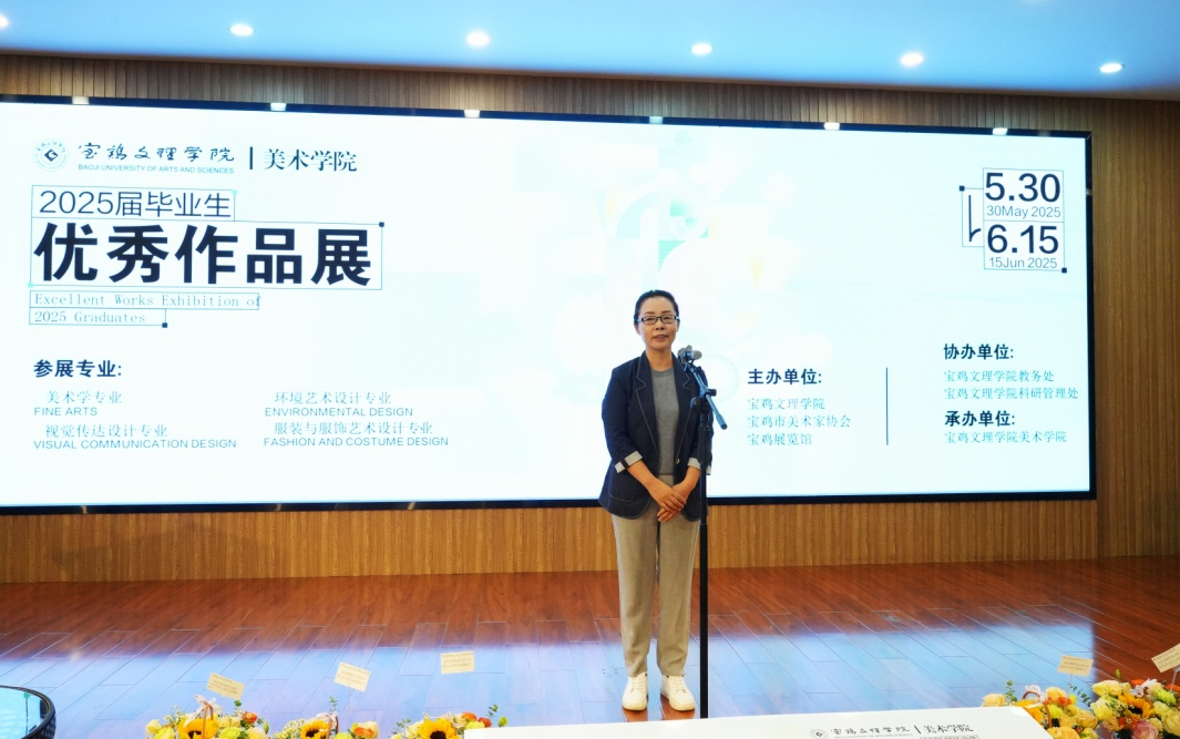 5月30日上午,美术学院2025届毕业生优秀作品展在宝鸡展览馆开幕。校党委副书记李景宜出席开幕式并宣布展览开幕。开幕式由美术学院党委书记崔小丽主持。