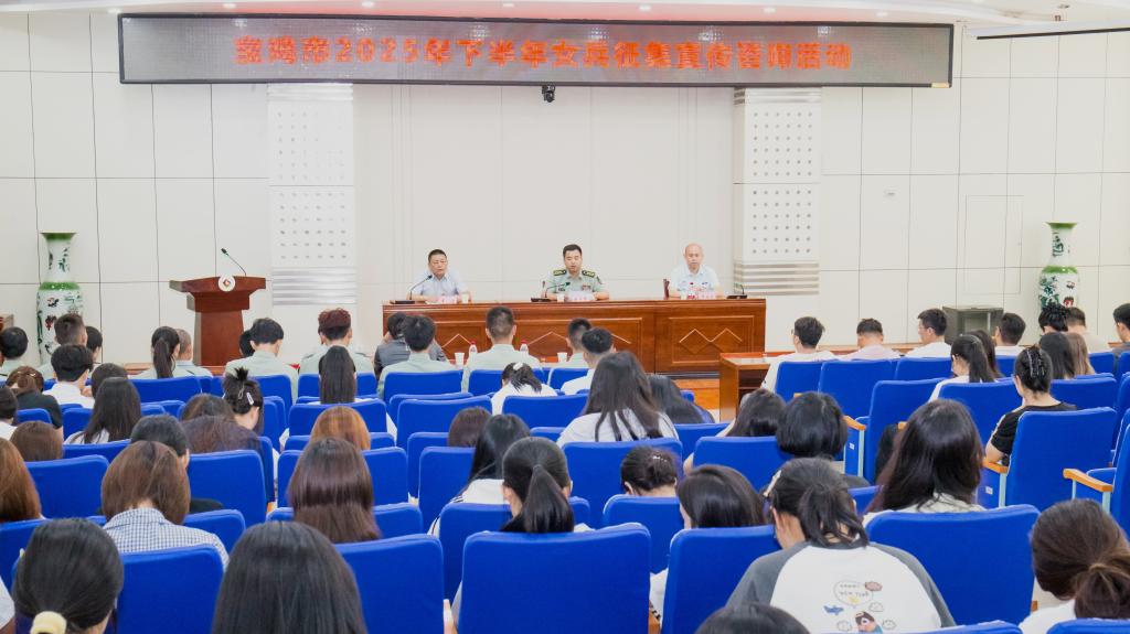 6月18日下午,宝鸡市2025年下半年女兵征集宣传咨询活动在开元高新校区木铎厅举行。宝鸡市征兵办公室副主任魏海峰参加活动并讲话。