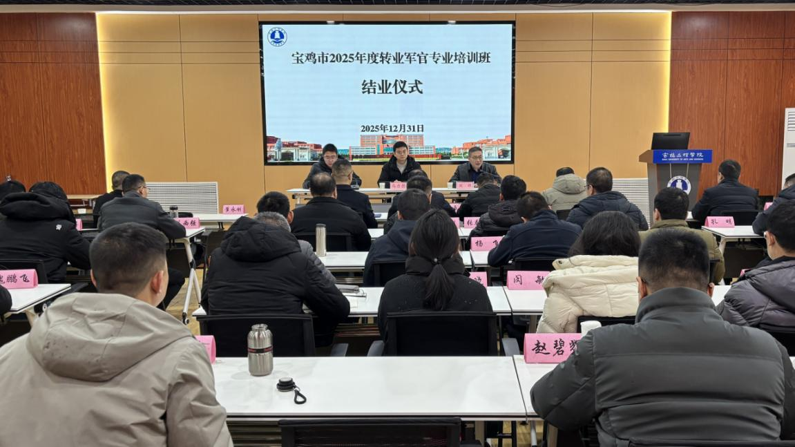 12月31日上午,开元经济管理学院承办的宝鸡市2025年度转业军官专业培训班结业仪式在高新校区尚能楼318报告厅举行。学院院长刘辉、宝鸡市退役军人事务局干部安置科马力德主任参加结业仪式。