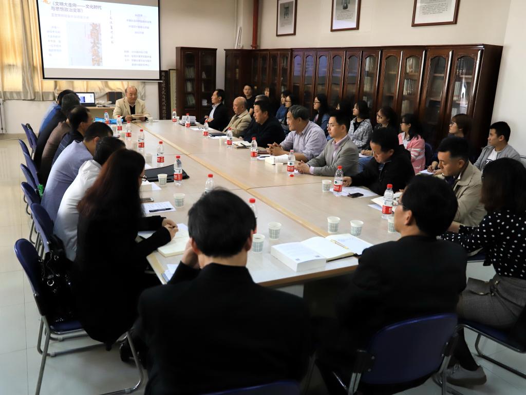 4月17日下午,《文明大走向——文化时代与思想政治变革》出版座谈会在开元图书馆七楼召开。宣传部、社科处、离退处、图书馆、马克思主义学院、政法学院、外语学院等单位30余人参加了座谈会。会议由政法学院院长石玉平主持。