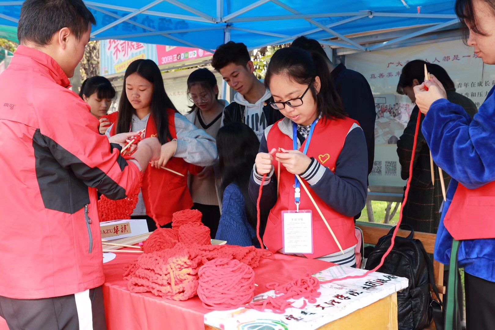 织围巾的毛线分送地点设在了食堂对面,人头攒动的小摊点成了一道靓丽的风景线,五年来的坚持和传承让“暖冬”的爱在不断扩大。随着活动的展开,越来越多的同学加入到此次活动中,不会织围巾的同学也积极向青志联的值班同学讨教方法。宝鸡电视台就此次活动对开元师生进行了相关采访。活动虽然只有两天,但是六百多卷毛线已全部发放完毕,回收上来的不仅是一个个用心的红围脖,而且还承载起了文理学子对小朋友的真挚祝福。