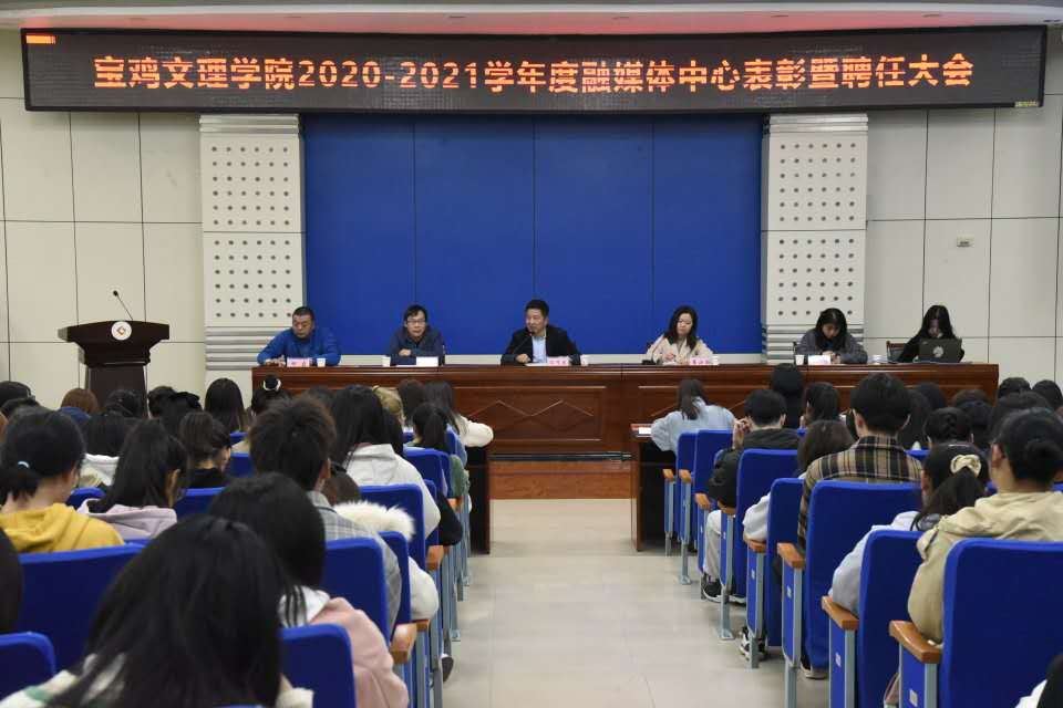 10月29日晚,党委宣传部融媒体中心2020-2021学年度表彰暨聘任大会在高新校区木铎厅举行。党委宣传部部长冯飞龙参加会议并讲话。会议由宣传部副部长、新闻中心主任崔小丽主持。