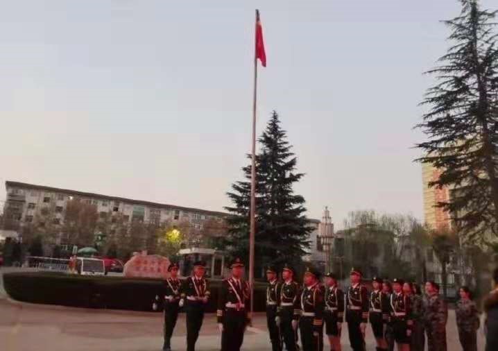 一是在新老校区举行升国旗活动。8时整,英姿挺拔的校国旗护卫队护卫着国旗正步走到国旗杆下,伴着《义勇军进行曲》雄壮的旋律,鲜艳的五星红旗冉冉升起,现场气氛庄严肃穆。