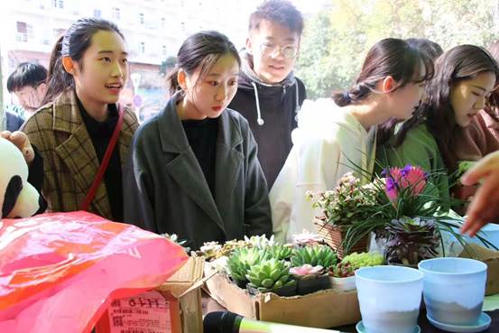 活动现场同学们情绪高涨,人头攒动。可以通过当天微信运动达到8000步或收集塑料瓶、废纸或讲出绿植守护心得,多肉成长“小愿望”等方式带多肉或植物种子回家。文传学院曹雅喆说道“绿植领养活动非常有意义,自己平时就很喜欢多肉植物,从自身做起,为地球增添一抹绿色。”还有同学们兴冲冲的表示“我想体验一下把植物从种子慢慢养大的感觉”“如果绿植长得好,看见它们的时候我的心情也会很好”