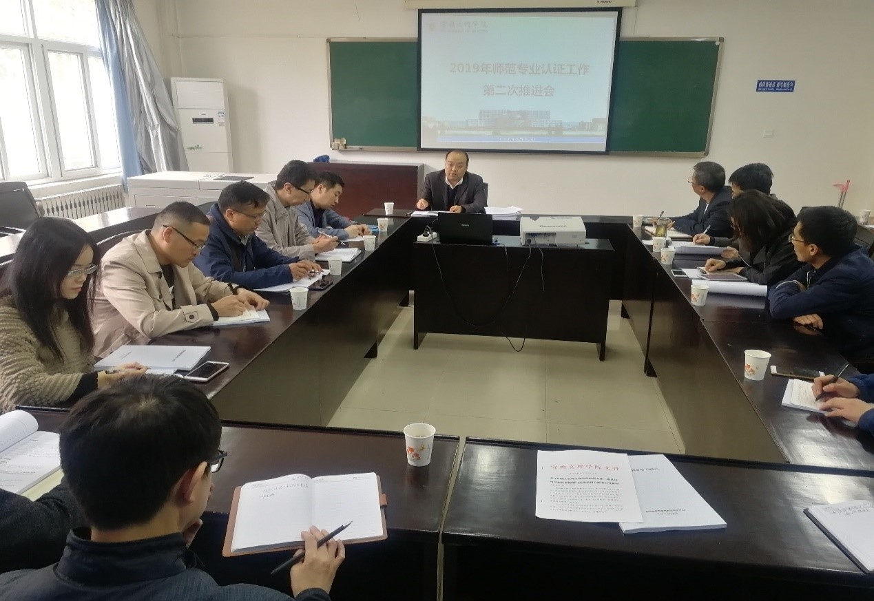 会上,刘景世传达了3月份教育部在天津召开的师范专业认证培训会议精神,通报了开元师范类专业认证一级数据信息复核确认情况,安排了近期师范专业二级认证工作,提出了三点要求:一是高度重视,统一思想,提高认识,全员动员,全员参与,充分认识师范专业认证的重要性和紧迫感;二是坚持“走出去,请进来”的方式,加强与2018年已经通过师范专业认证高校的交流与沟通,邀请师范专业认证专家到校指导;三是认真研究师范专业认证的指标体系和认证要求,加快认证工作进度,强化教学过程管理,加强教学档案建设。