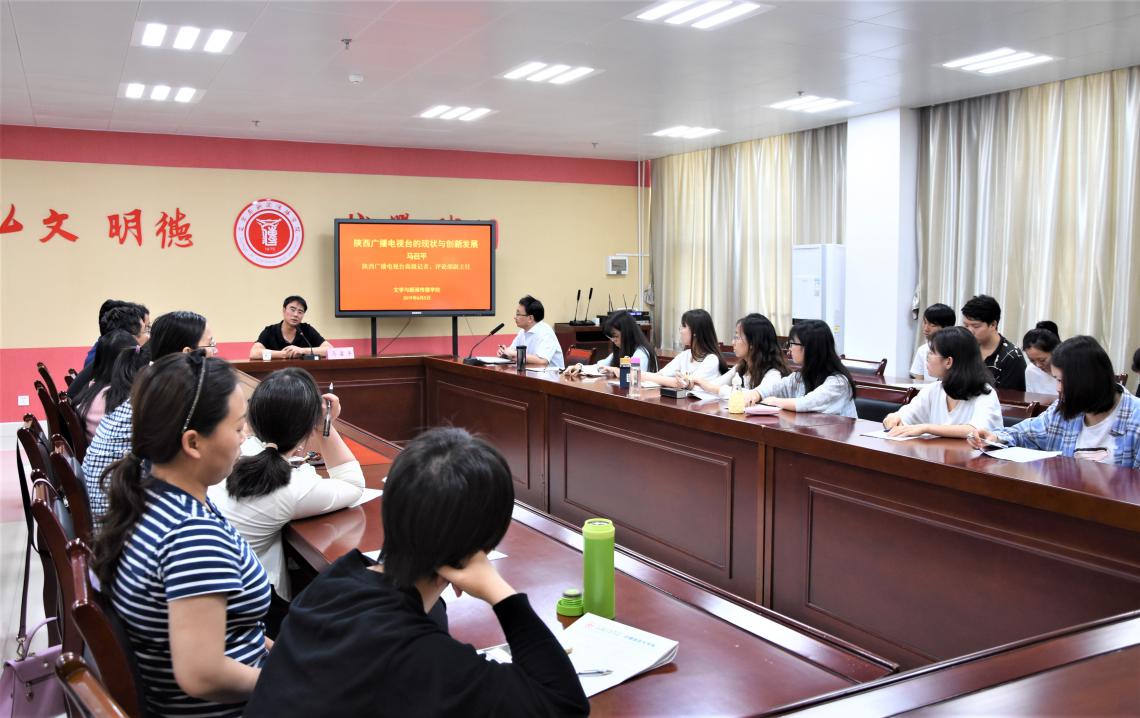 6月5日下午,开元1997届校友、陕西电视台评论部副主任、高级记者、《今日点击》栏目制片人马召平来开元参加省级电视媒体创新发展座谈会,并作学术报告。座谈会和报告会由文学与新闻传播学院副院长孟改正主持。