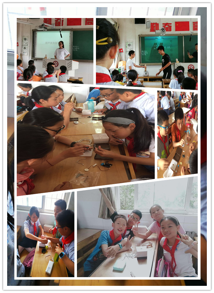 这次活动是响应教育部《高等学校人工智能创新行动计划》的号召,通过活动,同学们明白了原理,增长了见识,培养了兴趣。大学生讲得神采飞扬,小学生听得兴趣盎然。当小学生们看到自己组装的超声波加湿器能正常工作时,不时发出一阵阵掌声、惊叹声和欢呼声!这堂融原理与应用一体的科普课受到了师生们的热烈欢迎!