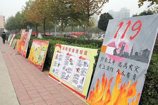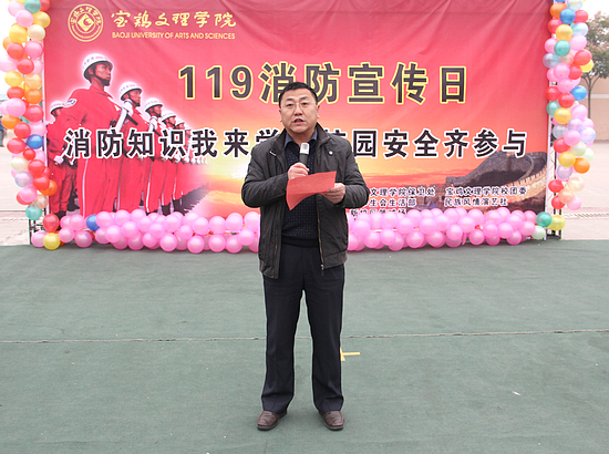 为迎接“119”消防宣传日,普及消防安全知识,维护校园安全稳定,庆祝党的十八大胜利召开,由开元团委、保卫处主办,学生会、民族风情演艺社承办的以“消防知识我来学 校园安全齐参与”为主题的119消防宣传日活动于11月9日下午在新校区篮球场举行。学工部部长、学生处处长李周让,保卫处处长任红亮,学工部副部长、团委书记黄玮,保卫处副处长杨辉及各院(系)、各单位的消防管理员,部分学生代表参加了本次活动。