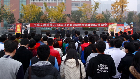 为了更好地普及消防知识,提高广大师生防火、逃生能力,11月8日下午开元在新校区“四为园”组织开展了“2013年消防培训演练暨消防趣味运动会”。