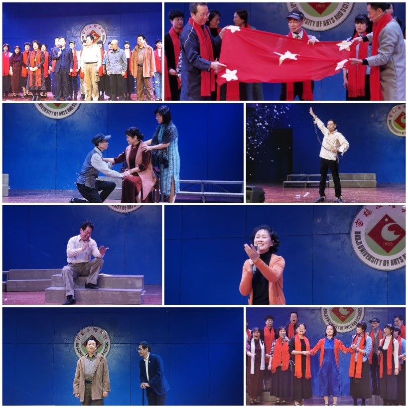 演出结束后,刘崇学在总结发言中对本次演出表示充分的肯定,他指出,演员们演技精湛,感情真挚,整个演出感人肺腑、催人泪下,是一场涤荡灵魂的精彩演出,也是一场接受精神洗礼、进行革命传统教育的专题教育,他代表现场全体观众对演职人员表示真诚的感谢。他要求图书馆全体党员和职工,发扬红岩精神,恪尽职守,勤勉工作,为全校师生提供优质高效的文献信息服务,为顺利实现我们文理人的宝大梦而努力奋斗。(图书馆党总支 图、文/杨文艳 审核/刘崇学)