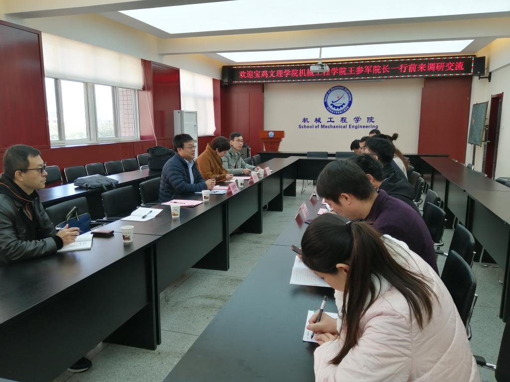 为了推进机械工程学院专业建设、学科建设及学位点建设,11月14日,机械工程学院院长王参军、副院长王肖烨、机械设计制造及其自动化系主任王玮、材料成型及控制工程系副主任吴泽恩和创新创业中心主任张博一行五人组成调研小组前往西安理工大学和西安科技大学进行调研。