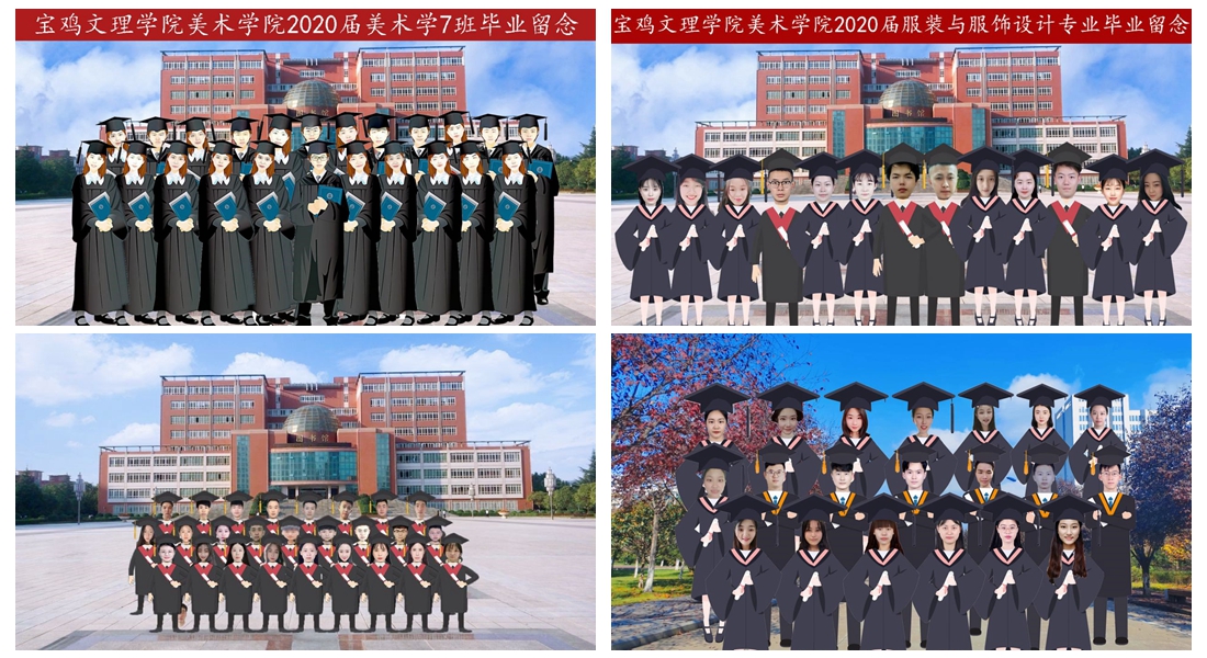 新冠疫情的突如其来让今年毕业季不同往常,“云”毕业的特殊印记让2020届毕业生没有了身着学士服、头戴学士帽的“仪式感”,也少了与老师同学们合影留念、依依惜别的“幸福感”。为了给今年的毕业生保存美好的青春记忆,把最特别的爱献给学生,最暖心的关怀送给学生,美术学院集思广益、发挥专业优势先后开展了云毕业照制作活动。