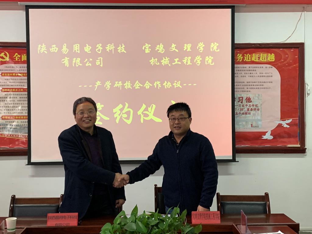 10月14日下午,机械工程学院与陕西易用电子科技有限公司在石鼓校区学院会议室举行了产学研校企合作协议签约仪式,仪式由副院长高晓龙主持。