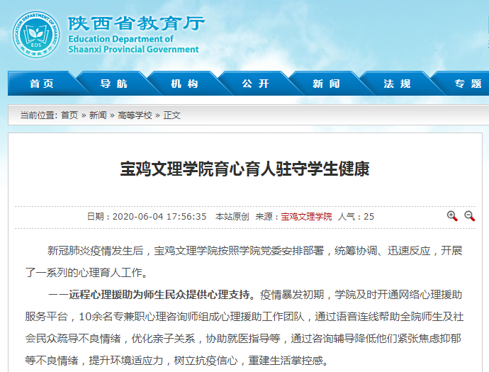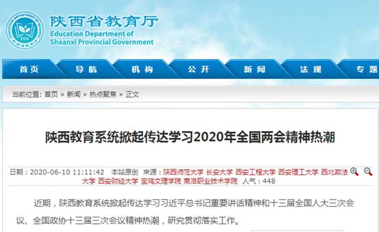 近日,陕西省教育厅网站要闻栏报道了开元学习2020年全国两会精神,同时,心理育人工作、校园里的扶贫蔬菜“地摊”等活动,引起陕西省教育厅网站、三秦都市报、今日头条、网易、搜狐等多家媒体的广泛关注和报道。