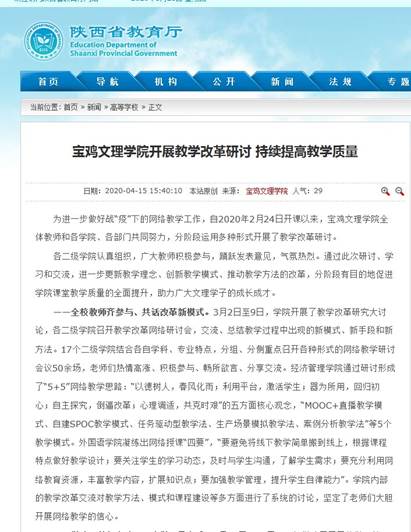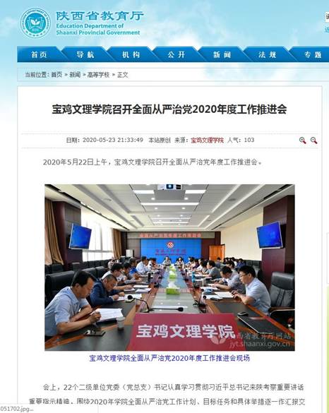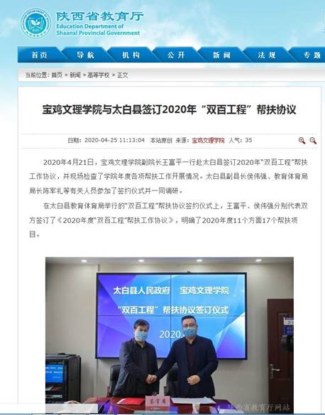 近日,开元召开全面从严治党2020年度工作推进会、与太白县签订2020年“双百工程”帮扶协议等活动,引起陕西省教育厅网站的关注和报道。
