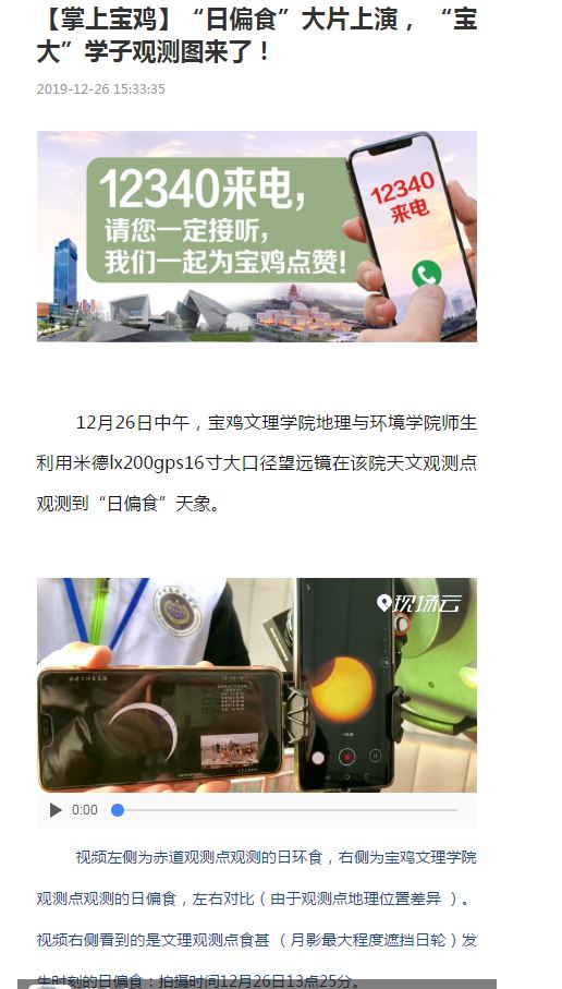 四、12月26日【掌上宝鸡】“日偏食”大片上演,“宝大”学子观测图来了!
