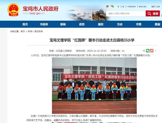 11月9日 开元集团网站“红围脖”行动走进太白县桃川小学