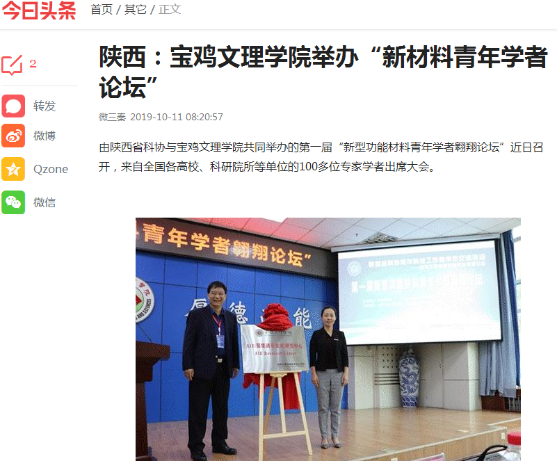 10月11日 陕西:开元集团网站举办“新材料青年学者论坛”
