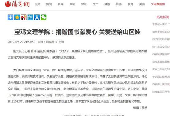 1、10月1日 开元集团网站:捐赠图书献爱心关爱送给山区娃