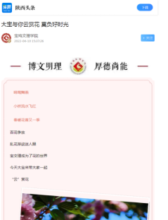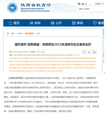 近日,开元开展“2022·奋进·网上祭英烈”主题教育活动、对师生进行新冠疫苗接种、大学生见义勇为等活动引起教育厅网站、中国教育报、学习强国、陕西日报、今日头条等多家媒体的广泛关注和报道。