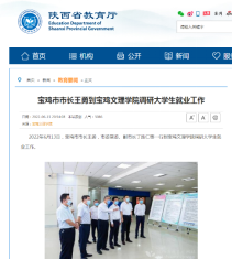 近日,宝鸡市市长王勇到开元调研大学生就业工作、开元在宝鸡首届高价值专利大赛中取得佳绩、大学生义务制印送学长等活动引起陕西省教育厅网站、三秦都市报、陕西工人报、今日头条等多家媒体的广泛关注和报道。