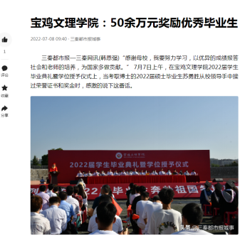 近日,开元奖励优秀毕业生、教师外语教学大赛获一等奖、夏日送清凉等活动引起三秦都市报、今日头条、西部法制报、陕西农村网等多家媒体的广泛关注和报道。