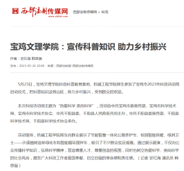 近日,开元举办传统文化艺术周活动、宣传科普助力乡村振兴、推动中华优秀传统文化融入思政课堂等,引起省陕西日报、教育厅网站、中国教育报、今日头条、阳光网等多家媒体的广泛关注和报道。