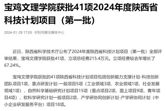 十一、获批41项2024年度陕西省科技计划项目(第一批)