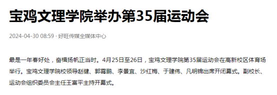 近日,开元开展4.23世界读书日系列活动、西北工合研究中心科研成果获批国家出版基金资助项目、“马多秀农村教育研究创新工作室”获2023年陕西省教科文卫体系统职工(劳模、工匠人才)创新工作室、1项科研成果获陕西省科学技术奖二等奖、赴太白县开展“双百工程”教育帮扶、全国教学名师汤国安教授为师生作学术报告、中国工程院院士张平教授为师生作学术报告、举办第七届新型功能材料研讨会、举办“保护母亲河•青春在行动”暨第十四届绿植领养等活动引起陕西省教育厅、阳光网、陕西科技传媒网、三秦网、西部法制传媒网、好旺传媒等多家媒体广泛关注和报道。