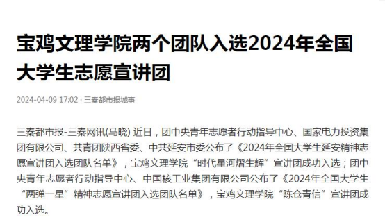 四、两个团队入选2024年全国大学生志愿宣讲团