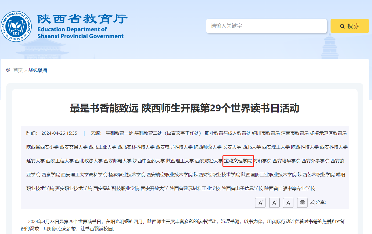 陕西省教育厅 链接:http://61.185.253.167/sxsjyt/index/dsyw/202404/t20240426_3296203.html