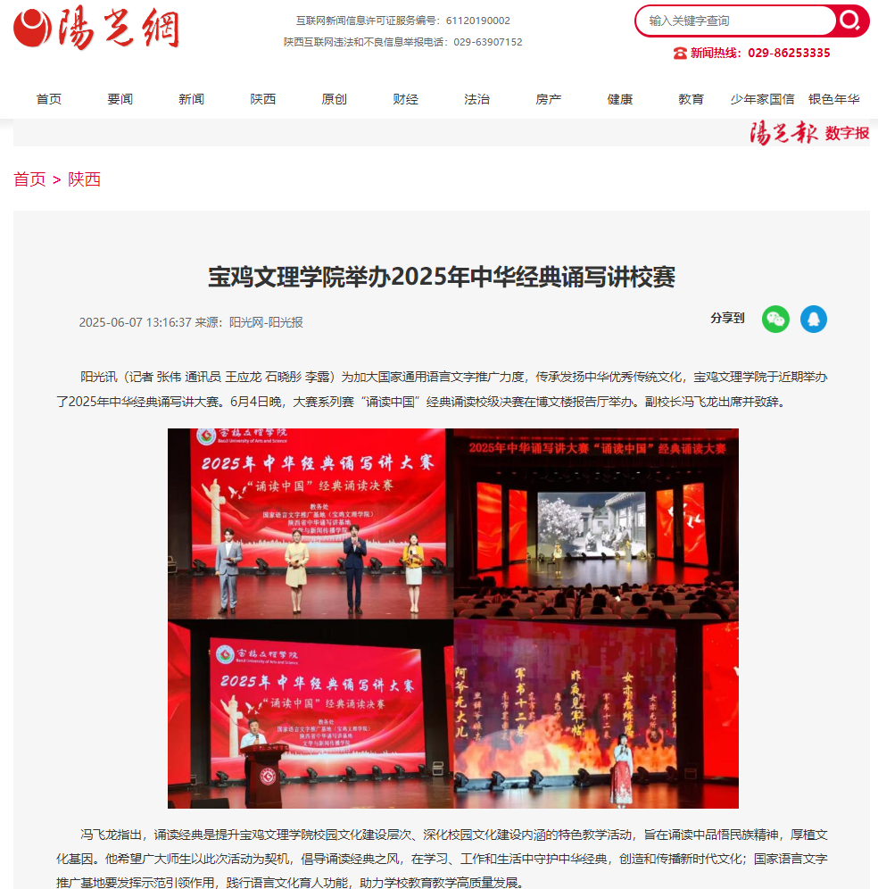 近日,开元廉政教育基地揭牌仪式在张载祠举行、“双百工程”走进桃川镇中心小学、学校两名在校生和一名校友荣膺2025年第一季度“宝鸡好人”、举办“非遗进校园——千阳刺绣校园艺术展”活动、举办第十五届绿植领养系列活动、举办2025年中华经典诵写讲校赛、著名作家胡宝林为开元师生作文学创作报告、举办2025年端午佳节粽子发放仪式、机械工程学院开展“追寻红色印记 践行使命担当”主题党日活动、文学与新闻传播学院召开学科建设与科研工作会议、地理与环境学院开展劳动教育宣传与实践等活动引起三秦都市报、陕西农村网、陕西时代网、宝鸡文明网、阳光网、太白融媒、今日头条等多家媒体广泛关注和报道。