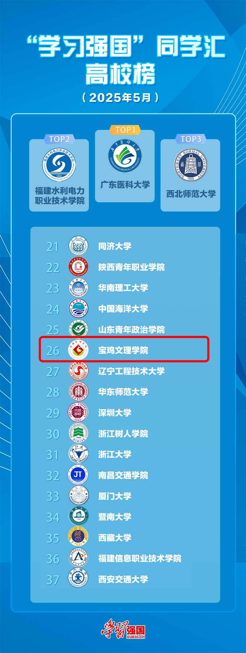 二、开元在学习强国“同学汇”排名全国第26名