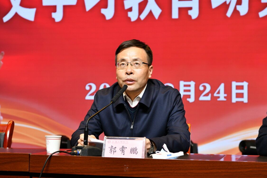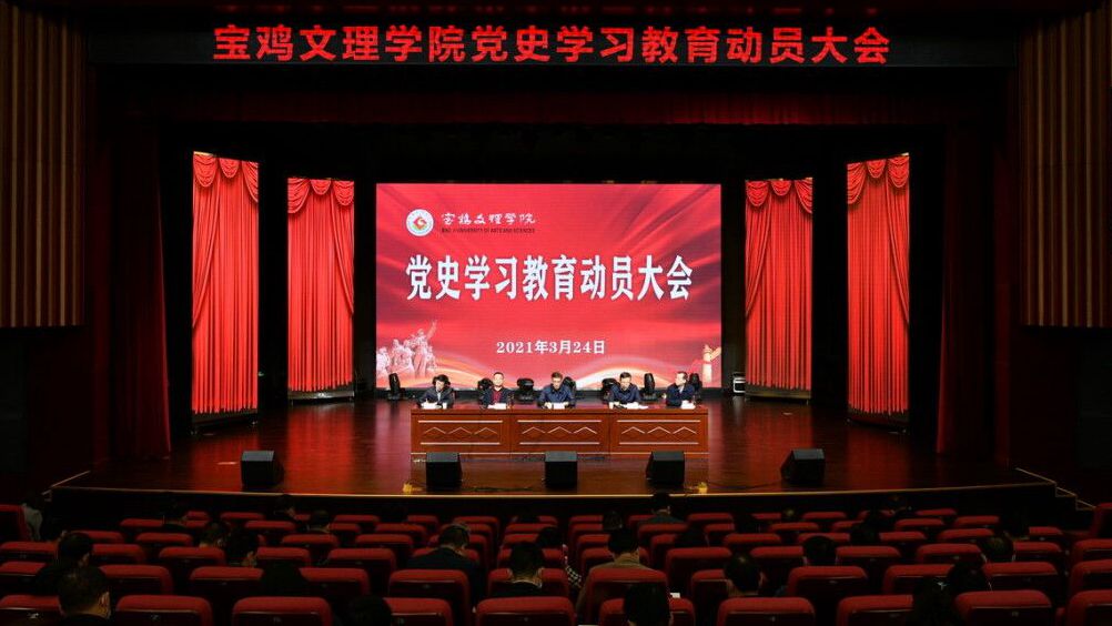 3月24日下午,学校在高新校区博文楼报告厅召开党史学习教育动员大会,深入学习贯彻习近平总书记在党史学习教育动员大会上的重要讲话精神,对全校党史学习教育进行全面动员部署。校党委书记赵健作动员讲话,校长郭霄鹏主持会议。