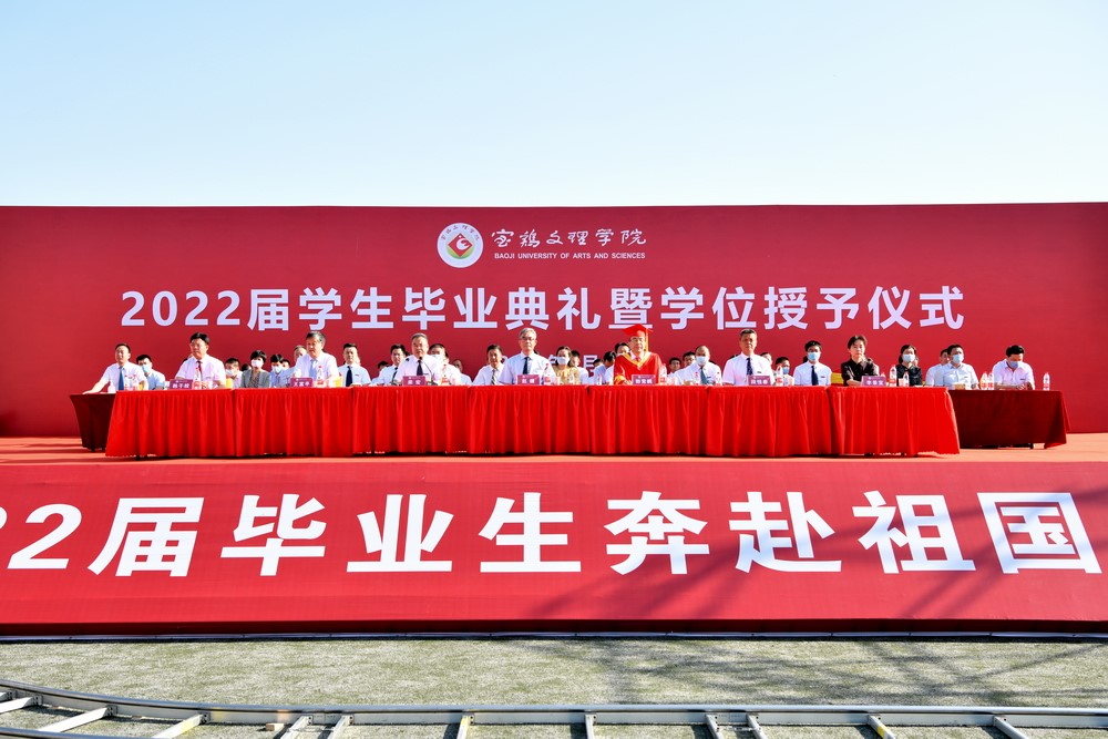 郭霄鹏指出,过去的几年里,2022届毕业生风雨兼程、不断突破,刻苦学习、全面发展,勇于创新、追求卓越,关爱同学、尊敬师长,无私奉献、热心公益,心系国家、感恩社会,以校为荣、爱校如家,是与新时代同向同行、共同前进的优秀青年,是有伟大创造力的青年,以奉献之姿书写青春之美,让前行的宝文理永葆勃勃生机,为奋进的宝文理增添了一道又一道夺目的光彩。他代表学校对同学们为学校发展作出的重要贡献表示衷心感谢。他向同学们提出三点希望:一要心系祖国,志存高远。希望同学们牢记习近平总书记“只有把小我融入大我,才会有海一样的胸怀,山一样的崇高”的教诲,与祖国共命运、与时代同步伐、与社会共进步,以青春之我、奋斗之我,践行“请党放心、强国有我”的青春誓言,将宝文理精神和“博文明理、厚德尚能”的校训内化于心、外化于行,为自己代言,为青春代言,为母校代言,到新时代的广阔天地中施展抱负、建功立业,争做“胸有大志、心有大我、肩有大任、行有大德”的新青年,让青春之花绽放在祖国最需要的地方。二要坚韧不拔,砥砺奋进。希望同学们不要被人生的无常和岁月的沧桑消磨掉奋斗的底色,在面对前进道路上的崎岖坎坷时,坚信“办法总比困难多”,始终保持昂扬向上的精神状态和一往无前的奋斗姿态,铸就坚韧不拔、不屈不挠的品格,在乘风破浪中开拓前进,在披荆斩棘中开辟天地,在攻坚克难中创造业绩,把生活施加的苛责改写成无愧于时代的人生华章。三要勤学苦练,增长才干。希望同学们牢记习近平总书记“梦想从学习开始、事业靠本领成就”的嘱托,时刻保持学习的热情,把学习作为穷其终生的首要任务,作为一种责任、一种精神追求、一种生活方式,夯实自己的知识基础,在不断学习中增长才干、丰富自我、提升素质,让勤奋学习成为不断进取的动力,让增长本领成为铸就梦想的基础。最后,郭霄鹏祝愿广大毕业生以梦为马,仗剑天涯,凌云壮志,再创辉煌。