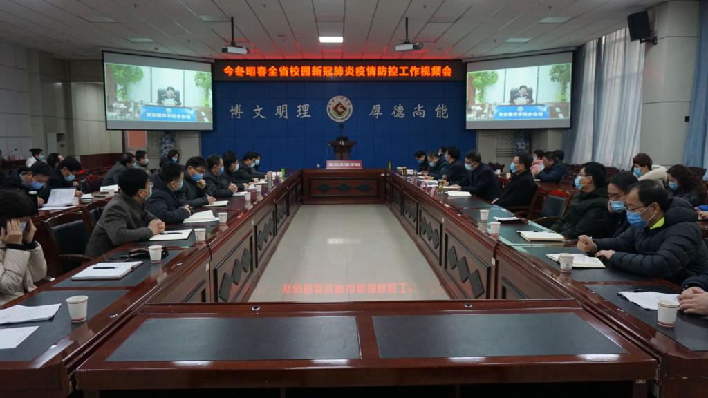 1月5日上午,今冬明春全省校园新冠肺炎疫情防控工作会议在省教育厅机关二楼大数据中心召开。陕西省委教育工委书记王建利、教育厅副厅长刘宝平出席会议并讲话。校党委书记赵健、校长郭霄鹏、副校长韩干校在开元分会场参加视频会。