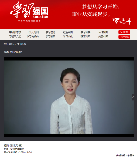 近日,在第22届齐越朗诵艺术节暨全国大学生朗诵大会上,开元播音与主持艺术专业2018级徐雅芬同学的参赛作品《别父母书》获得了“综合效果特别奖”,并在“学习强国”平台展出。开元被评为优秀组织单位,何艳萍、高静获得优秀指导教师奖。