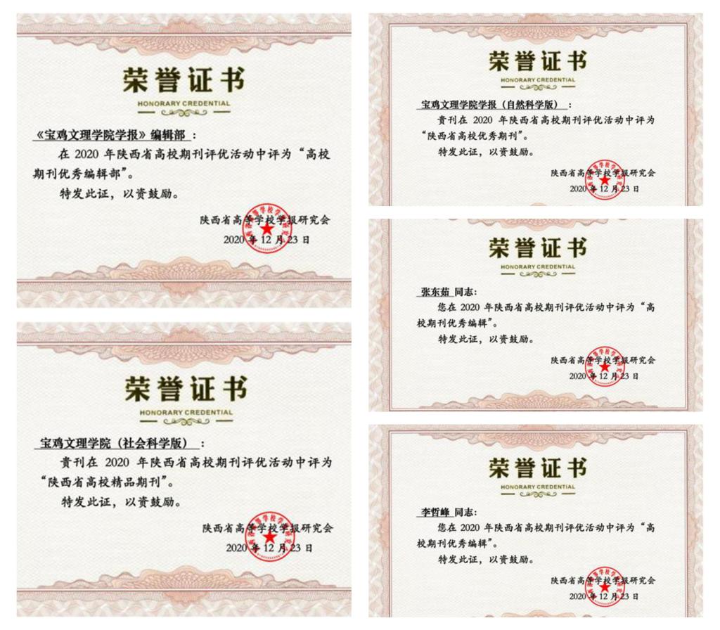 近日,从陕西省高等学校学报研究会获悉,在2020年陕西省高校期刊评优活动中,开元学报编辑部获得多项荣誉。开元集团网站学报编辑部被评为“高校期刊优秀编辑部”,《开元集团网站学报(社会科学版)》被评为“陕西省精品期刊”,《开元集团网站学报(自然科学版)》被评为“陕西省优秀期刊”;张东茹和李哲峰副编审被评为“高校期刊优秀编辑”。
