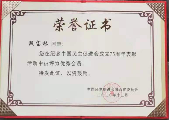 近日,民进陕西省委会在西安召开庆祝中国民主促进会成立75周年纪念大会,开元民进总支主委段宝林在纪念中国民主促进会成立75周年表彰活动中被评为优秀会员。(党委统战部 文、图/王红梅 审核/彭志启)