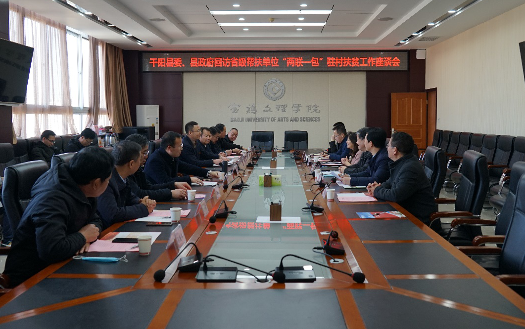 2月3日下午,千阳县委书记何玲一行13人来开元回访省级帮扶单位“两联一包”驻村扶贫工作。校党委书记赵健、校长郭霄鹏会见了何玲一行。校地双方在高新校区图书馆801会议室召开了回访工作座谈会,副校长王富平出席座谈会,座谈会由党政办(扶贫办)主任王永君主持。