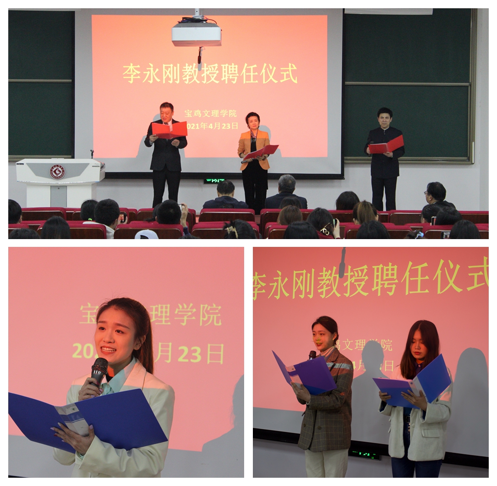 4月23日下午,陕西著名诗人李永刚教授聘任仪式在博文楼副105报告厅举行,党委副书记栾宏出席聘任仪式并为李永刚教授颁发聘书。陕西省播音主持委员会常务副主席凌江、陕西省播音主持委员会常委王芳、西安外国语大学播音与主持艺术专业主任樊强,开元学科建设与研究生教育管理处负责人及文学与新闻传播学院200余名师生参加了聘任仪式。聘任仪式由文学与新闻传播学院院长兰拉成主持。