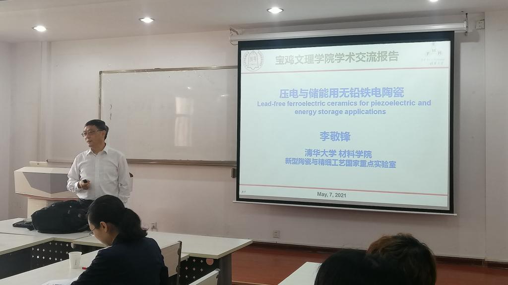 报告会上,李敬锋教授基于铁电物理理论阐述了铁电材料与压电材料的性能机制调控机制及应用,重点讲述了铌酸钾钠基无铅压电陶瓷的制备及性能提升机制,探讨了铌酸银、铌酸钠基反铁电体的压电性能和储能性能提升的掺杂技术,介绍了热电材料及新期刊《Journal of Materiomics》,围绕“如何提高英文科技论文写作质量”议题提出了指导性建议,并与参会的老师和同学进行了热烈讨论,认真解答了师生提出的相关问题。报告内容丰富,逻辑严谨,理论水平高,见解深邃。